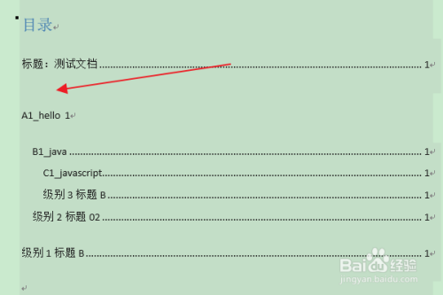 返回编纂区,可以看到选中级别(级别1)目次项文本已被设置了“多倍行距”结果。