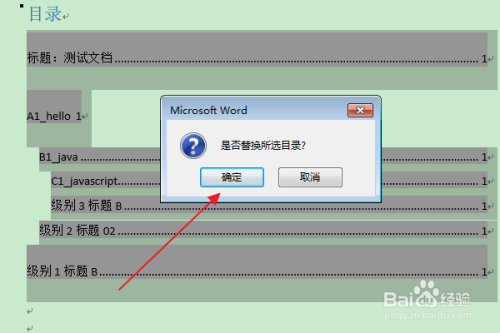 在“是否替代所选目次”的提醒框中,点击“是”。