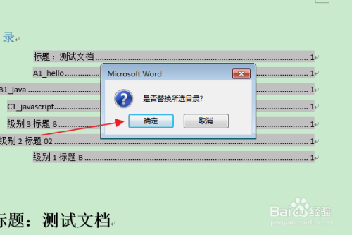 在“是否替代所选目次”的提醒框中,点击“是”。