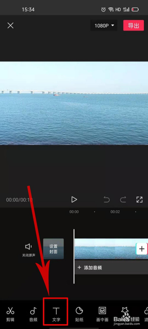 第二步,导入视频素材,点击添加文字,如图。