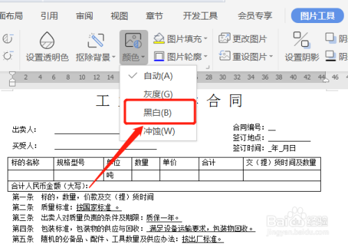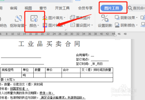点击图片,再点击上方的图片东西,点击颜色。