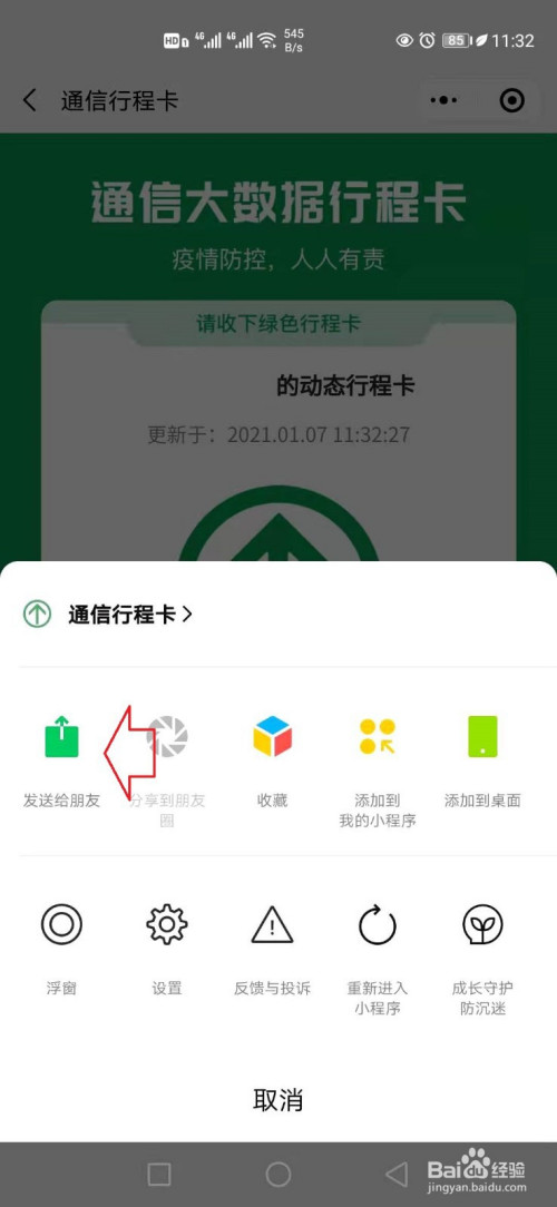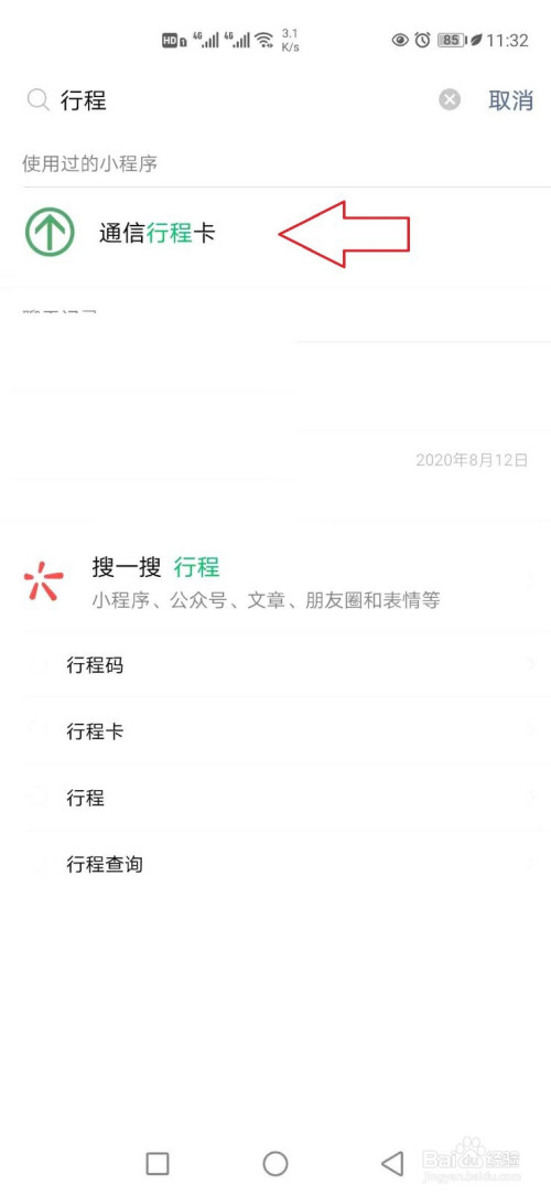 点击上方的搜索框,输入【行程卡】。
