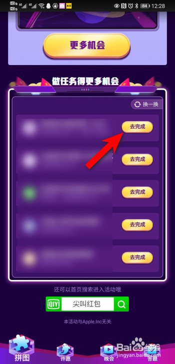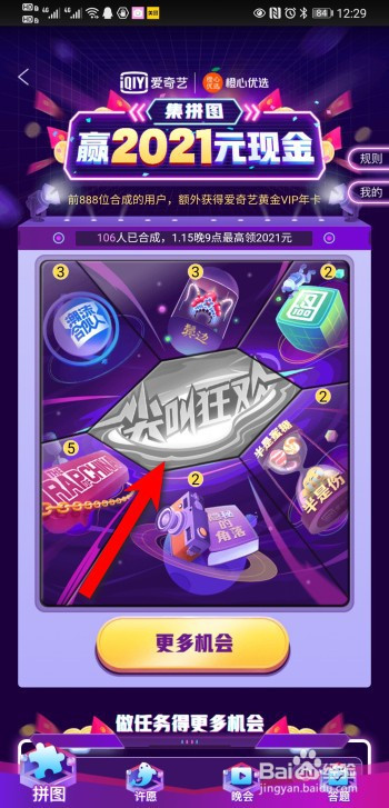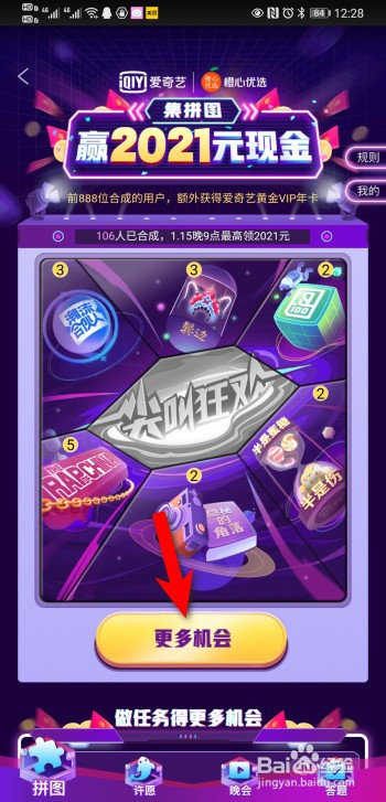点击去完当作,完当作使命后,可以获得更多抽拼图机遇。