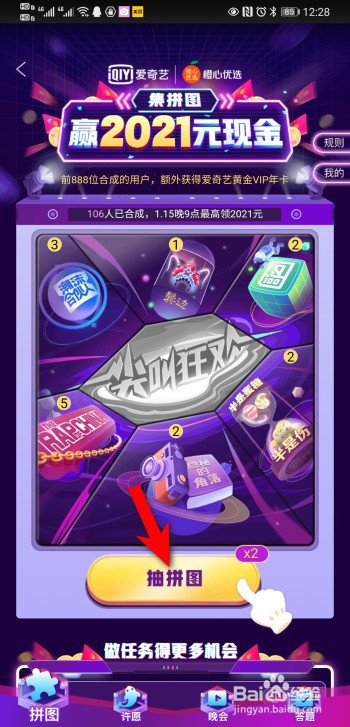 之后点击抽拼图,天天可以免费抽2次。