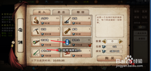 花100文钱买到一个捕兽夹,天天只能买一个。