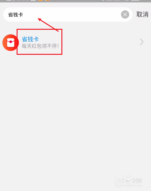 输入省钱卡进行搜刮,在搜刮成果里我们很快就找到省钱卡功能。
