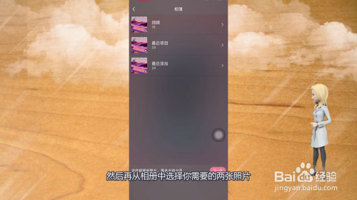 4、然后再从相册中选择您需要的两张照片。