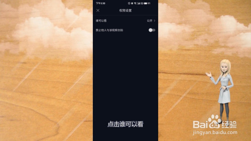 5、进入权限设置后,点击谁可以看。