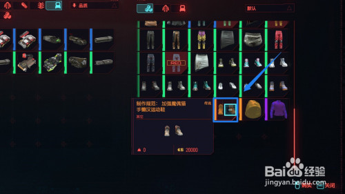 在商品列表的最下面就可以找到增强魔偶猎手懒汉活动鞋的建造图,需要破费20000块采办。