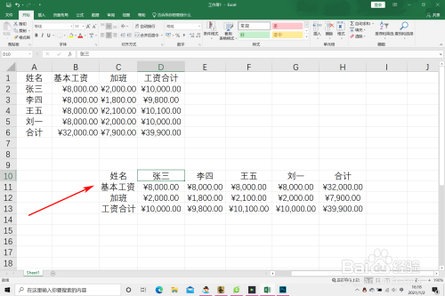 然后,选中需要横标的目的变纵标的目的的表格。