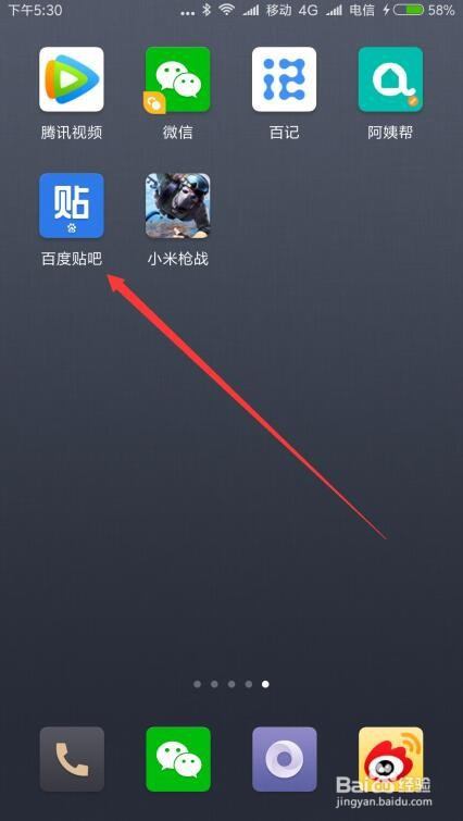 在手机屏幕上摆布滑动点击百度贴吧的图标。