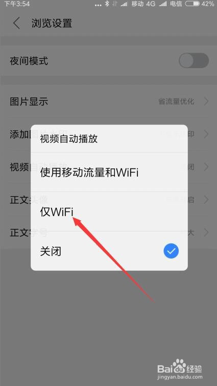 然后在打开的页面中选择仅WiFi菜单项就可以了。