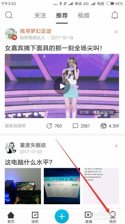 然后在打开的百度贴吧本家儿界面,点击右下角我的选项卡。