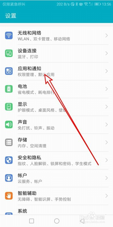接着在打开的手机设置页面,点击应用和通知菜单。