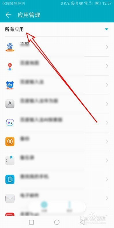 接下来在打开的应用办理窗口,点击所有应用下拉按钮。