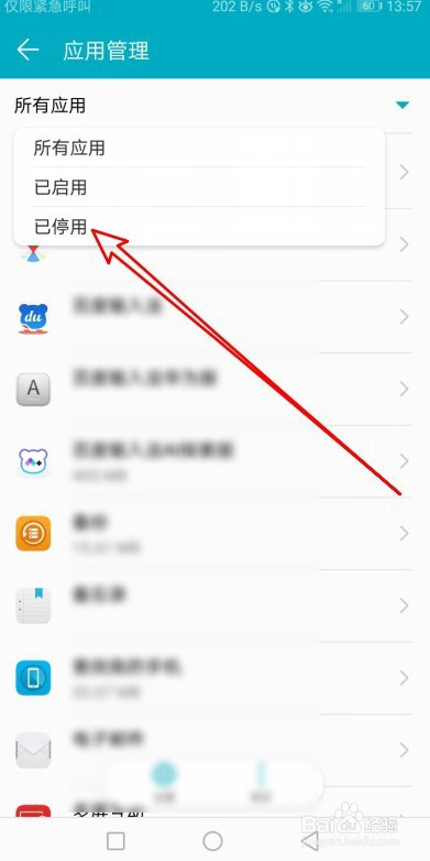 这样在打开的页面,我们可以看到停用的应用列表了。