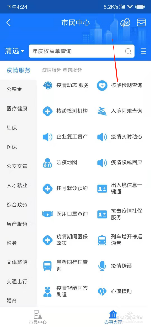 点击之后,核酸检测成果就查询出来了,如图所示。