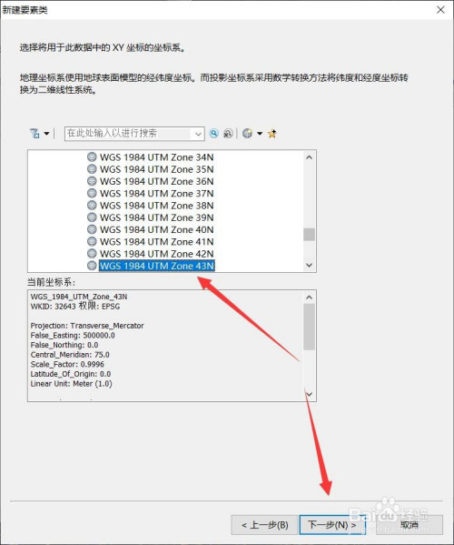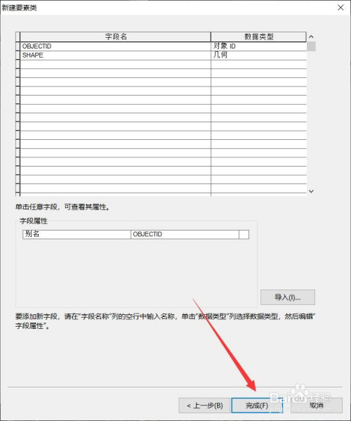 设置新要素的名字、类型、坐标系,然后一向点击【下一步】直到【完当作】。