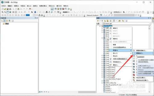 打开arcmap软件,在肆意数据库右键鼠标选择【新建】-【要素类】。