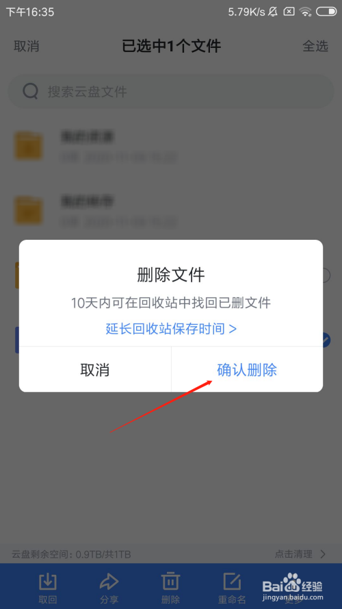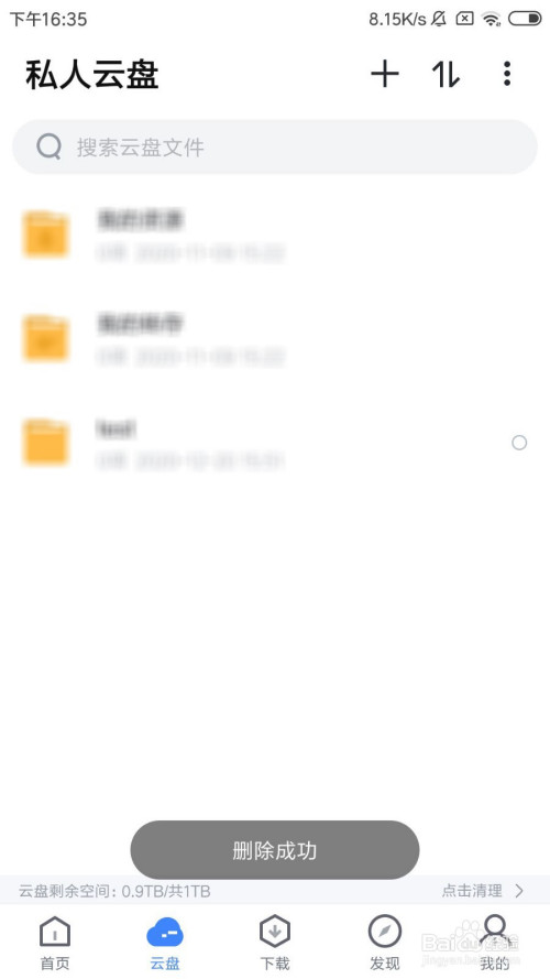 在云盘界面中,选摘要删除的文件。
