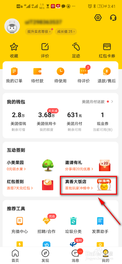 打开美团APP,点击右下角我的图标。