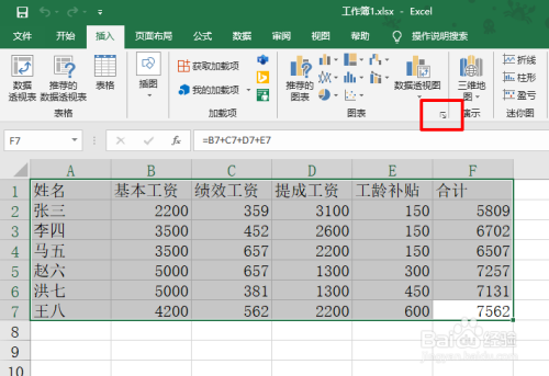 在【插入】菜单下方的图表东西栏中单击角标按钮。