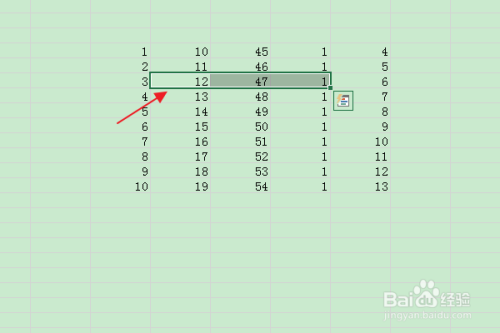 在编纂区输入表格数据后,选中位于分歧列的多个单位格