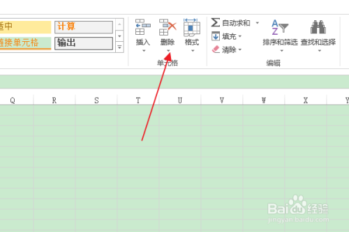 在“单位格”组中,点击“删除”下方的下拉按钮。