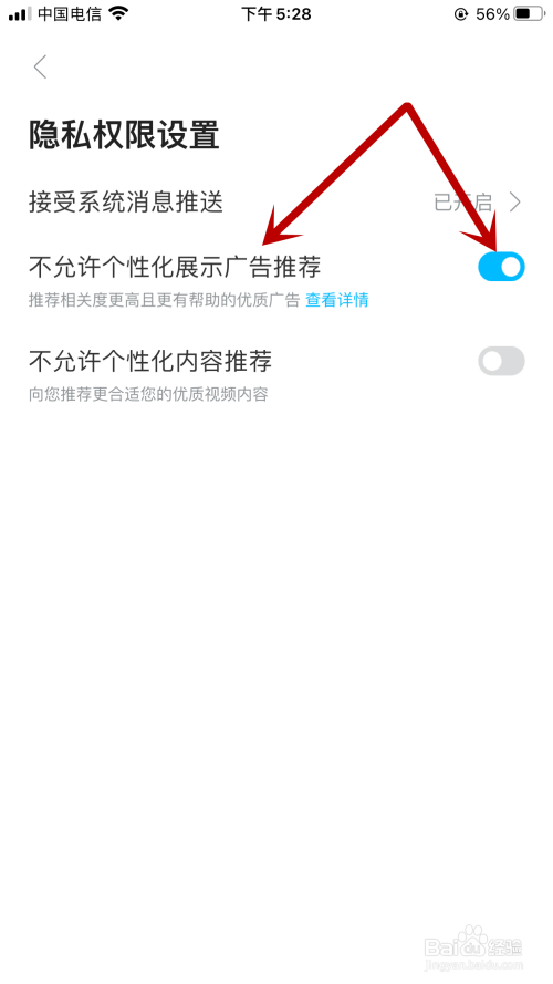 按钮变暗,就能许可接管个性化展示告白保举动静推送。