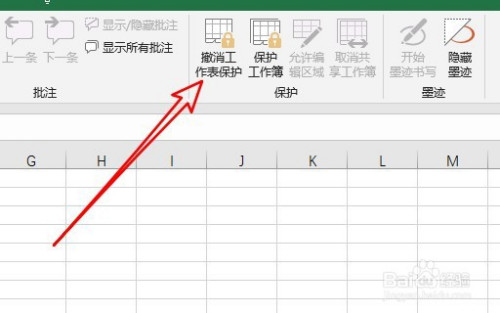 然后在打开的东西栏点击撤销工作表庇护图标。