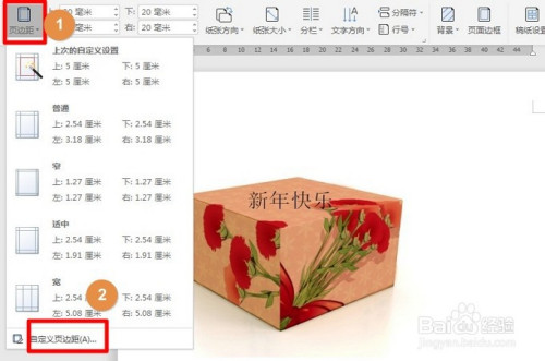在“页面结构”底下,点击“页边距”,再点击“自界说页边距”。