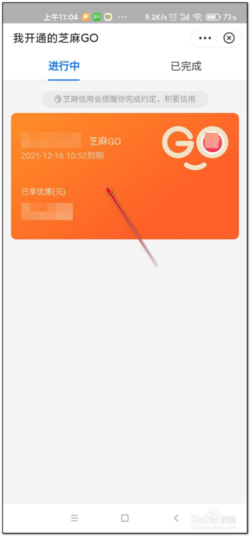 在此界面点击正在进行的芝麻GO项目