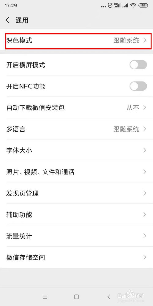 这样微信就进入深色模式。
