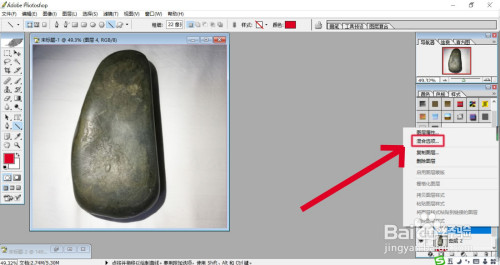 利用鼠标右键点击这个文字图层,从中选择夹杂选项,进入图层样式设置弹窗。