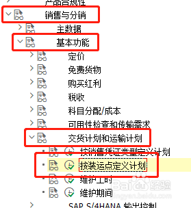 点击'发卖与分销',睁开子项,选择'根基功能' —>'交货打算和运输打算' —>'按装运点界说打算' ,点击执行