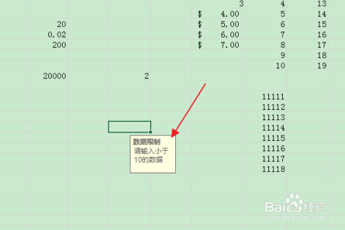 返回编纂区,选中被设置的单位格,可以看到单位格右下角弹出提醒信息。