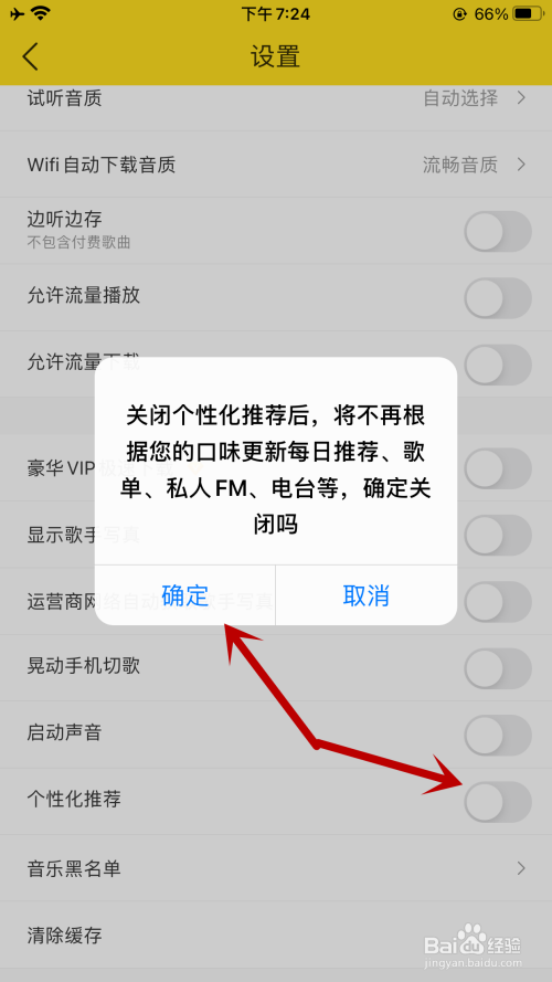 点击“确定”,封闭“个性化保举”开关后就能封闭个性化保举功能。