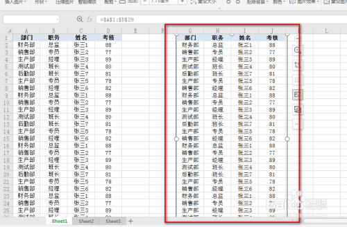 然后点中某个单位格,即可将数据区域截取当作图片,具体如图所示: