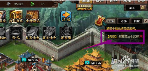 进入本家儿页面之后,点本家儿线内政使命招募第三武将