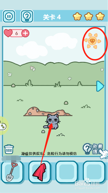 然后点击太阳并给小猫穿上红色披风
