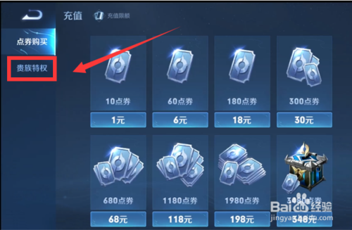 点击“贵族特权”。