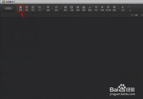第一步:打开光影魔术手软件,单击菜单栏中的“打开”。