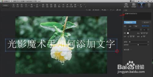 第四步:在文字输入框中,输入要添加到图片中的文字,拖动文字周围的小圆圈可以调整文字的大小。