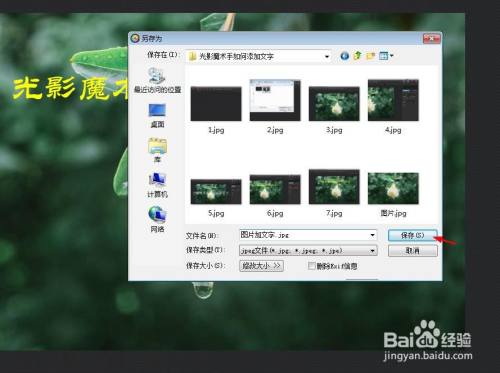 第六步:单击菜单栏中的“另存”,将加上文字的图片保留即可。