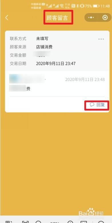 查看顾客留言并【答复】他,这样就可以联系上付条目人了。
