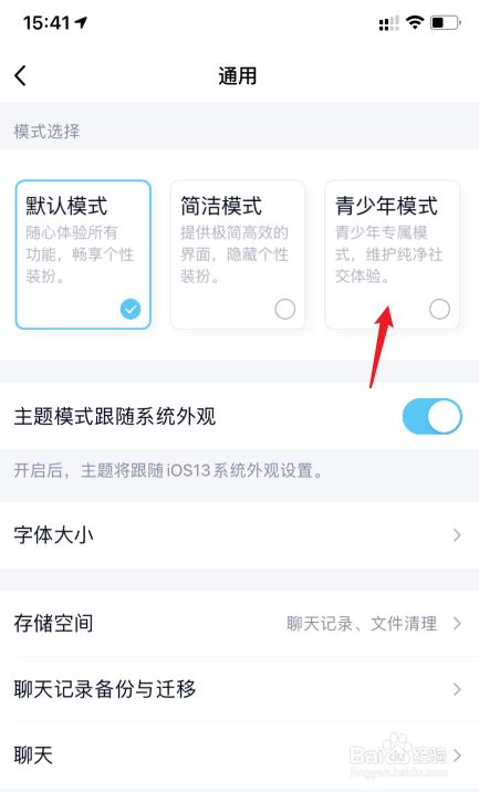点击青少年模式的选项。