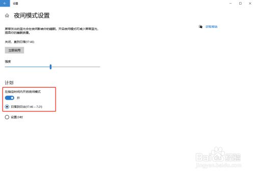将“在指按时间内开启夜间模式”下的开关打开,然后勾选“日落到日出”即可。