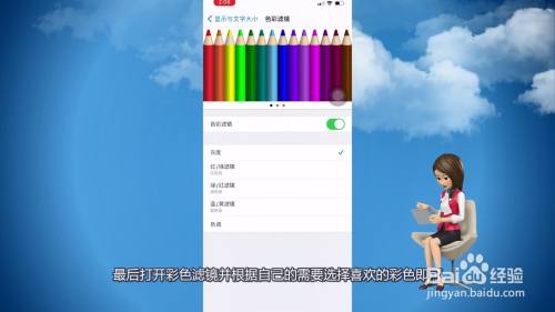 最后打开彩色滤镜并按照本身的需要选择喜好的彩色即可。