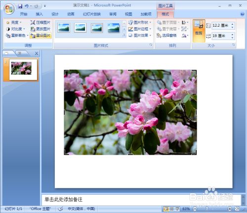 在图片外面空白处单击鼠标左键,我们就对图片进行了裁剪。