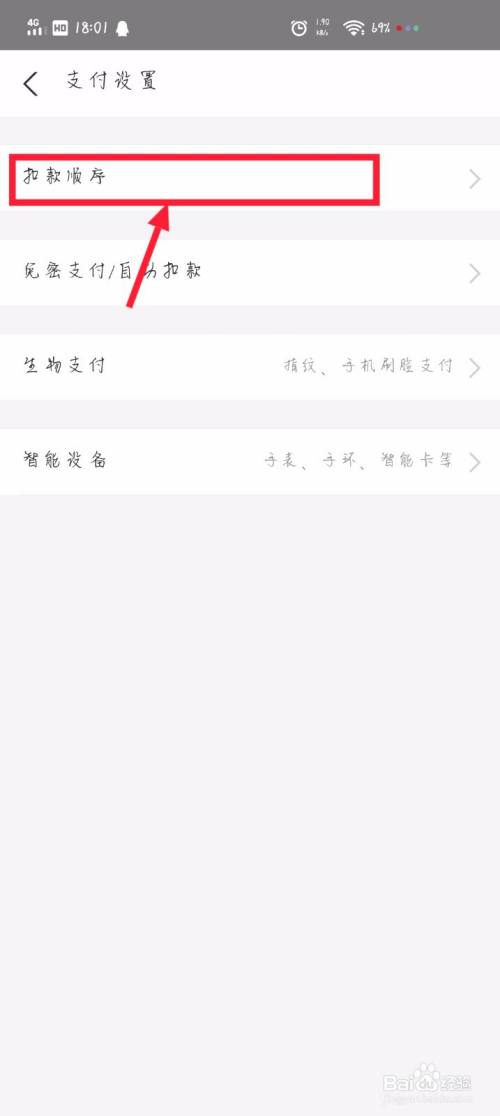 然后我在支付设置办理界面,点击扣条目挨次